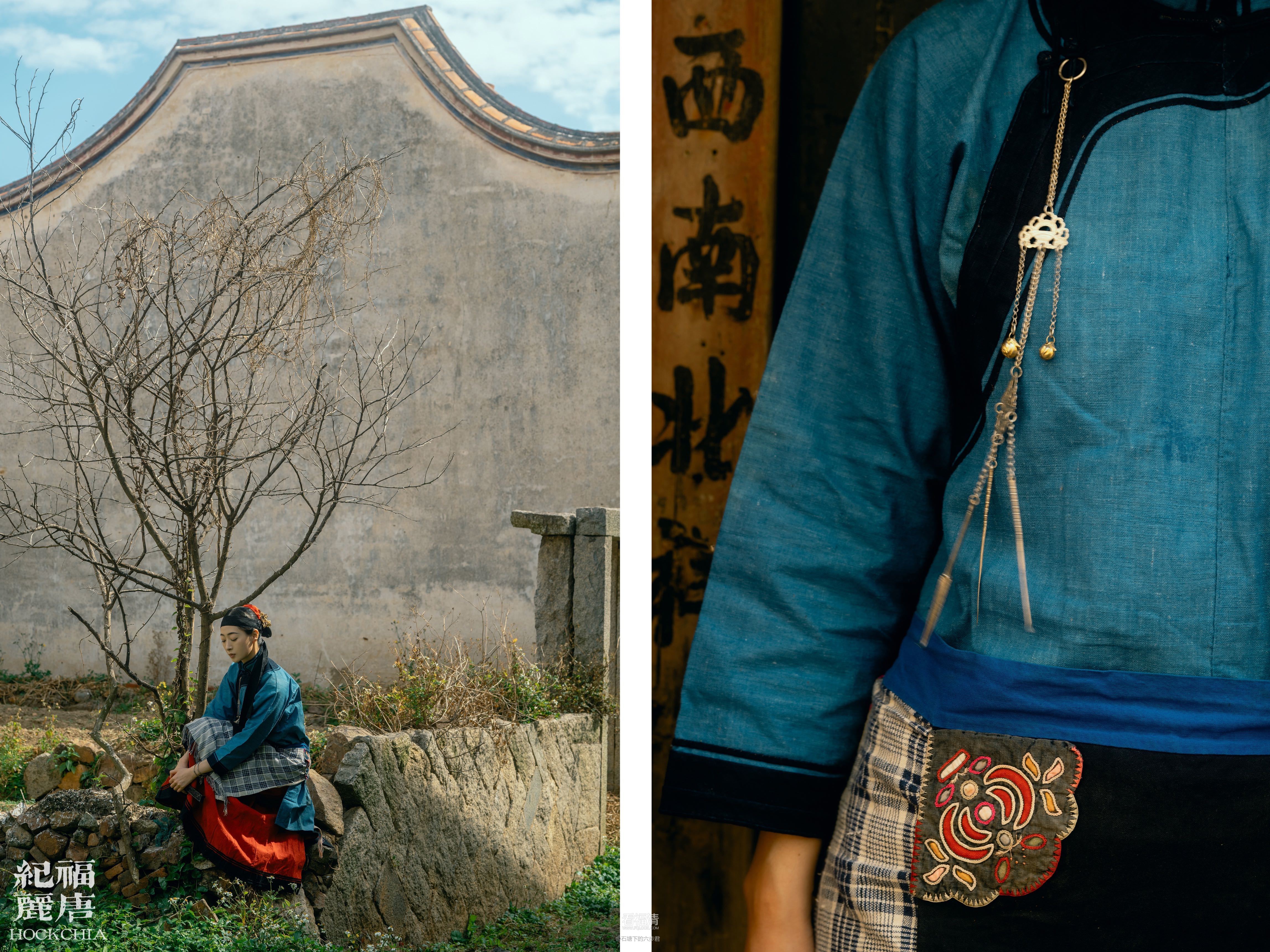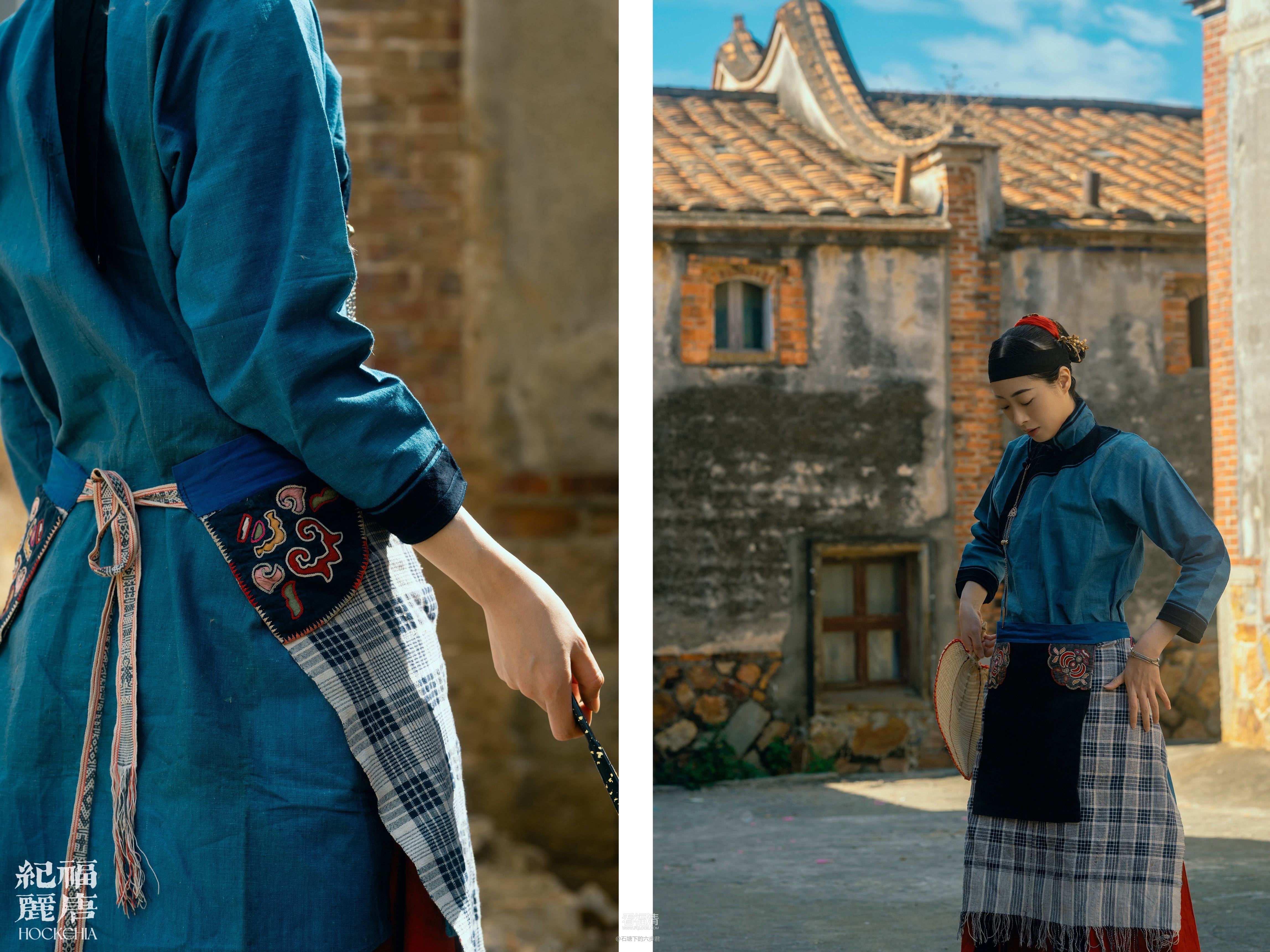 • 作为「福唐纪丽」发布的首个作品,此次对福清传统女性装束再现的搜集与筹备花费了近一年的时间,其中最大的困难在于对旧时服装与首饰的收集与重制。随着老一辈人的离去和时代的更迭,福清本土的传统衣物已极为稀少。甚至于缀有刺绣裙角的传统土布衣身裙,虽民间有一定的存世量,但想寻获良品依旧不易。