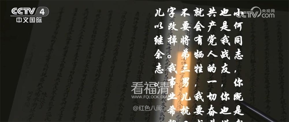 “小何同志,你既是我妻也是我战友,你也懂得共产党人的一切奋斗就会有牺牲,我要求你不要将弟三男儿抗日名字改掉,我事业希望吾儿以继余志。”“这是我们共产党人的自白书, 也是给我的抗日儿的遗嘱。”每当陈上旭父亲跟陈上旭念到这段话的时候,他也很感动。