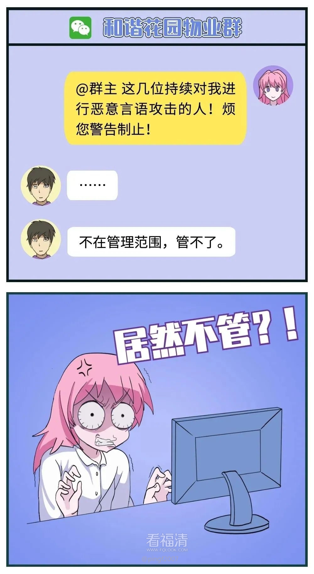 在长达半年多的时间里微信群频繁出现针对张小竟的恶意辱骂言论,张小竟反复多次、通过多种方式要求群主采取措施,但物业公司未采取任何管理措施,仅在解散微信群前夕发布公告提醒群成员注意文明用语,并于2019年5月19日解散该微信群,其长期不作为致使侵害张小竟名誉权的言论持续在群内传播。