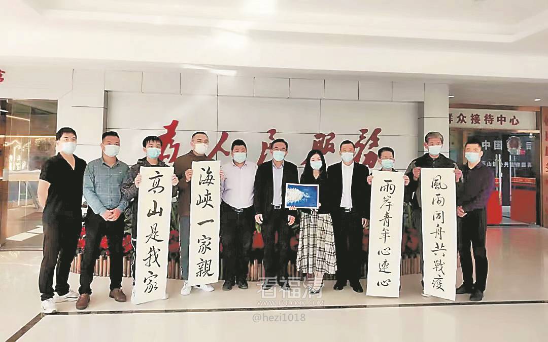 台胞向福清高山镇赠送表达“同心抗疫”的字画。 康艳波 摄
