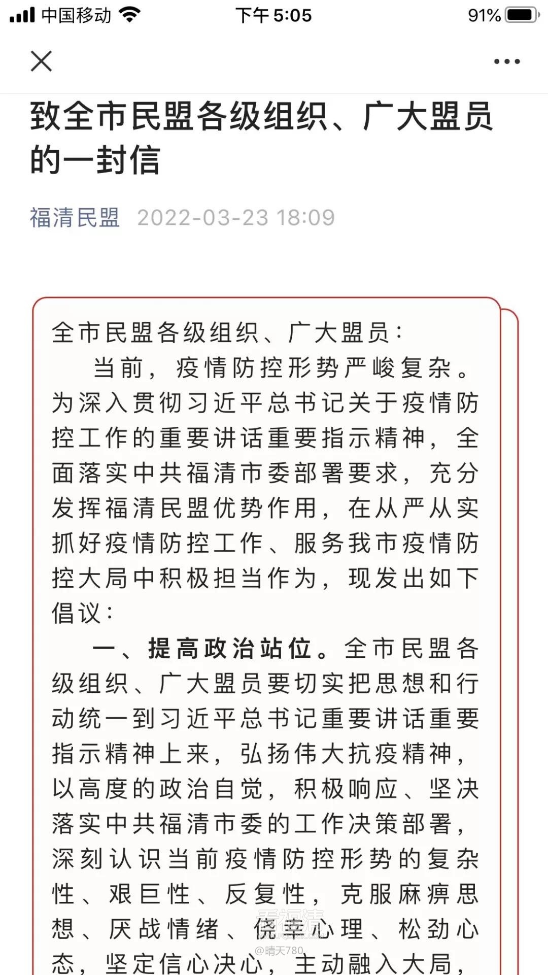 此外,民盟福清市委会还积极打造宣传阵地。在微信公众号开设“同心抗疫,福清民盟在行动”专栏,盟员们化身“小喇叭”、“宣传员”,积极转发宣传各条疫情防控政策、科普知识、辟谣文章等,以守望相助的力量汇聚同心抗疫正能量,共谱党盟同心,一起战“疫”的时代之歌。