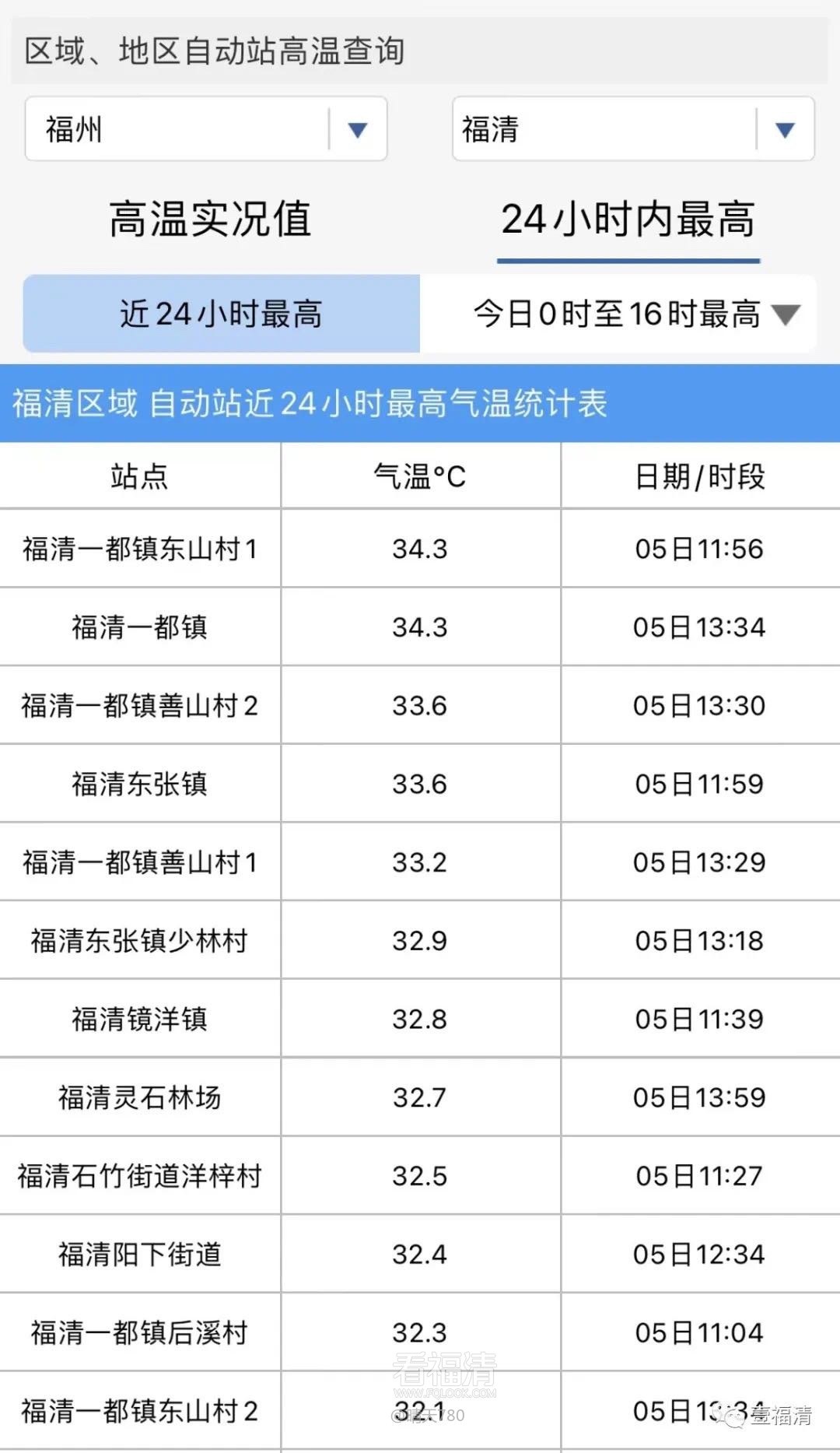 福清最高温34℃→25℃