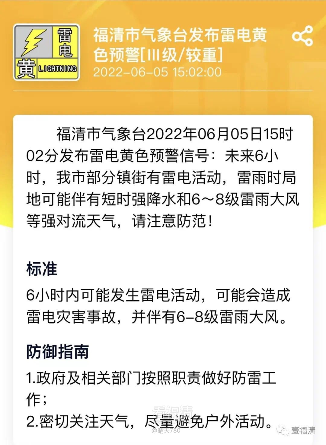 发布雷电黄色预警信号