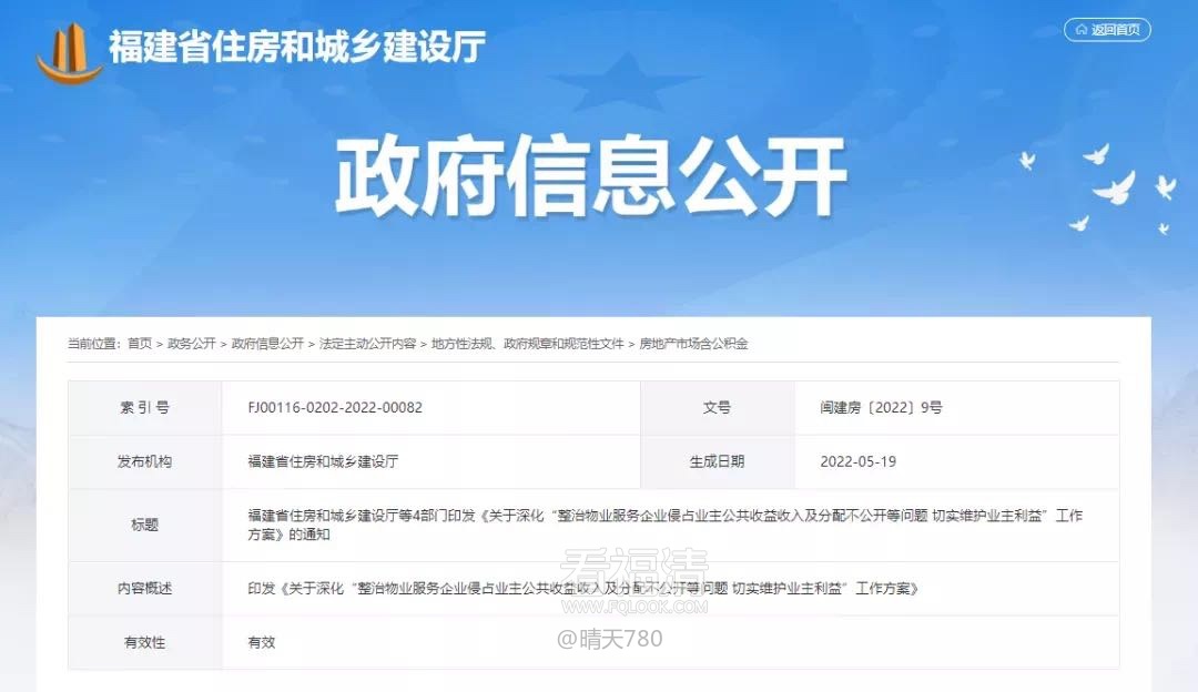 近日,福建省住房和城乡建设厅等4部门印发《关于深化“整治物业服务企业侵占业主公共收益收入及分配不公开等问题 切实维护业主利益”工作方案》的通知。