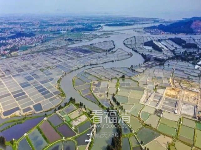 在福清市上迳镇,鸟瞰600余公顷的鳗鱼淡水养殖基地,仿佛一块块调色板,构成一幅别致的夏日画卷。