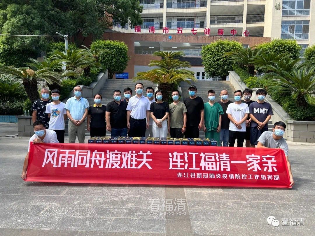 今天上午,连江县副县长张记欢以及连江县政府办、发改局一行,带着锦旗和连江特产来到福清市五七健康中心,向隔离点的工作人员和医护人员表示感谢和慰问。福清市副市长郑云参加活动。