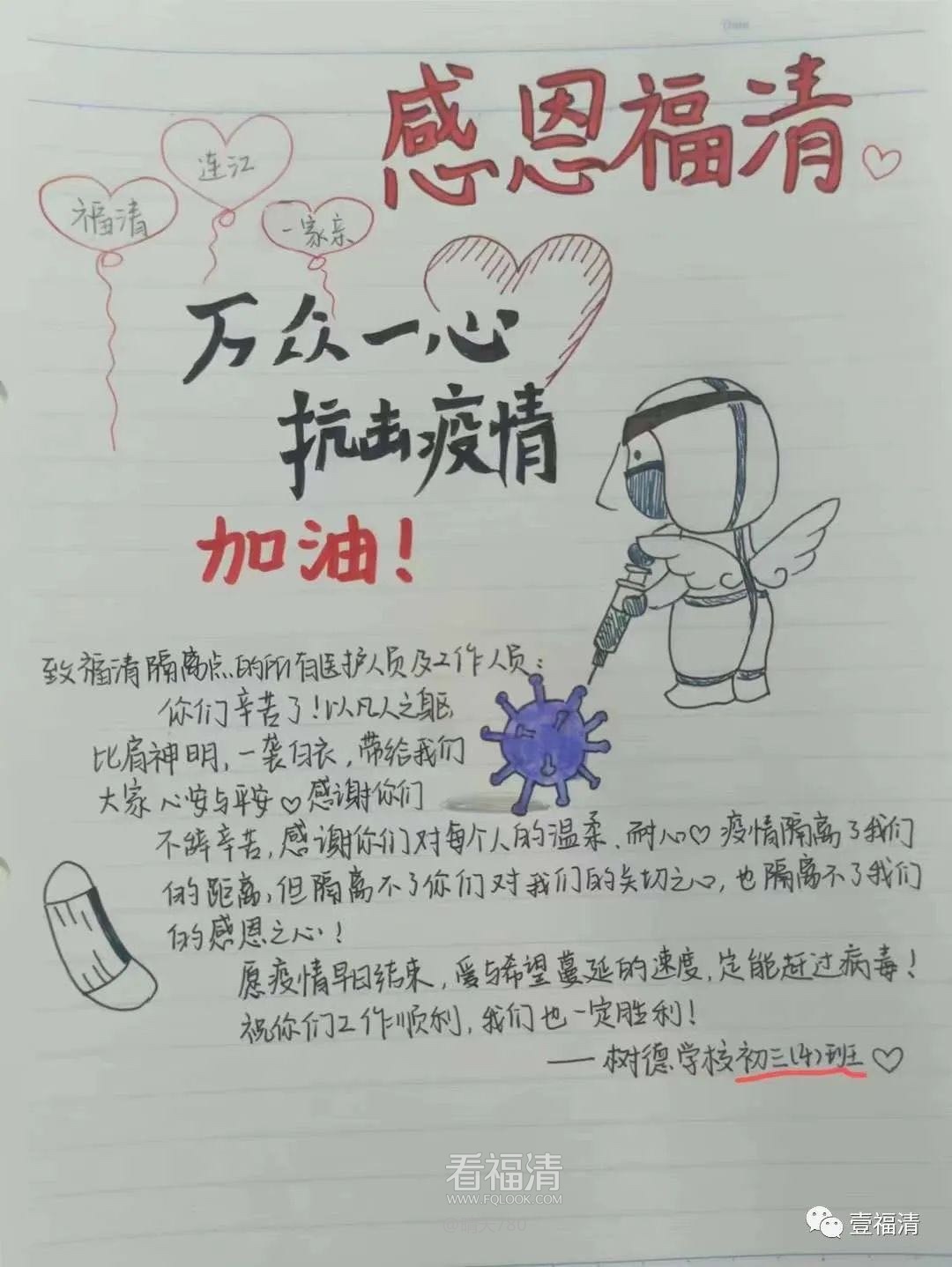 9月3日晚上,树德学校初三四班家委会向福清市政府、市教育局以及隔离点的工作人员和医护人员发来了感谢。