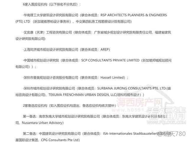 2022年10月20日在福州组织召开了中印尼“两国双园”元洪投资区城市设计方案征集设计机构遴选评审会,经评审委员会评审,最终选出6家入围应征机构和2家备选应征机构,现将此次遴选评审结果公布如下: