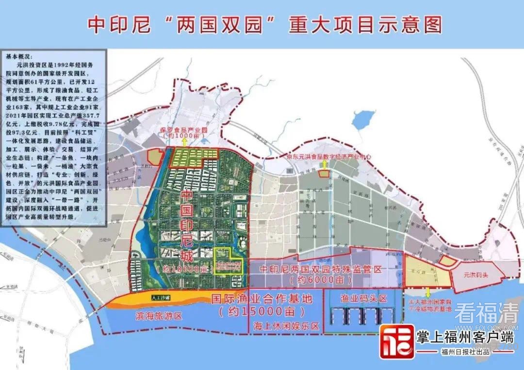 据《福州日报》报道,中印尼“两国双园”建设近日取得新进展,福州拟在福清市城头镇、海口镇部分区域,规划打造一个面积12平方公里的中国印尼城 。