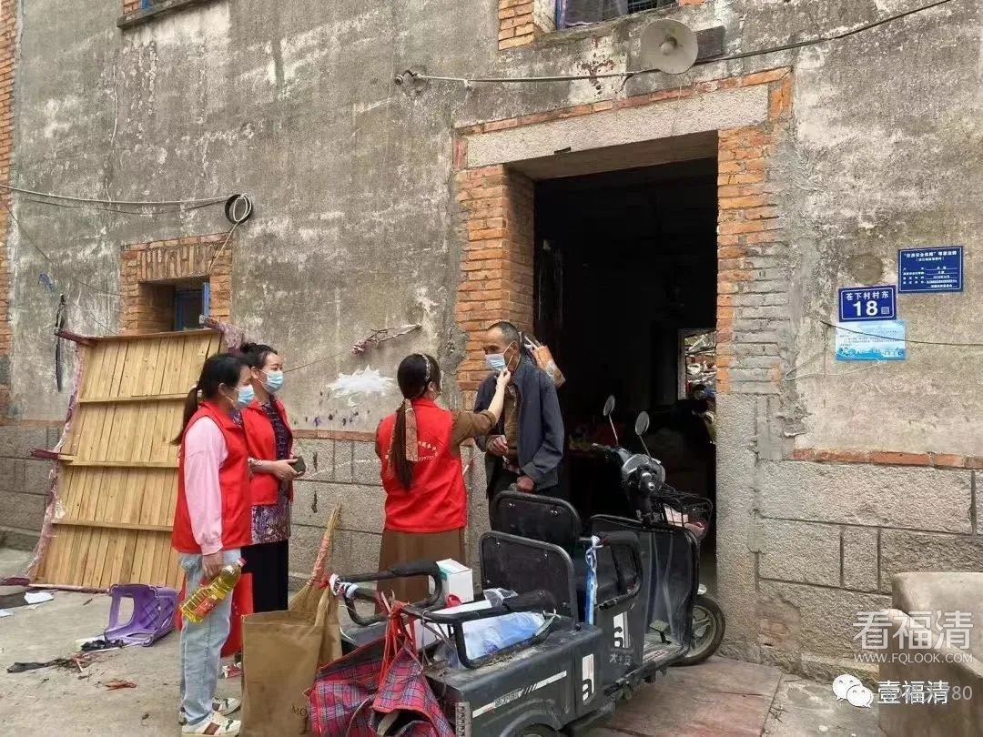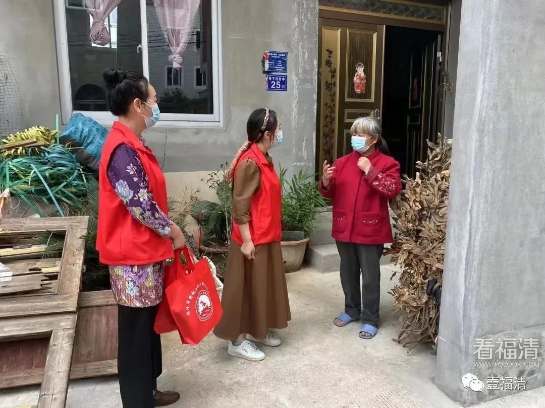 在龙江街道苍霞村,闫芬荣和其他志愿者来到村中的困难户家中,向困难群众宣传疫情防控相关知识并送上慰问品。