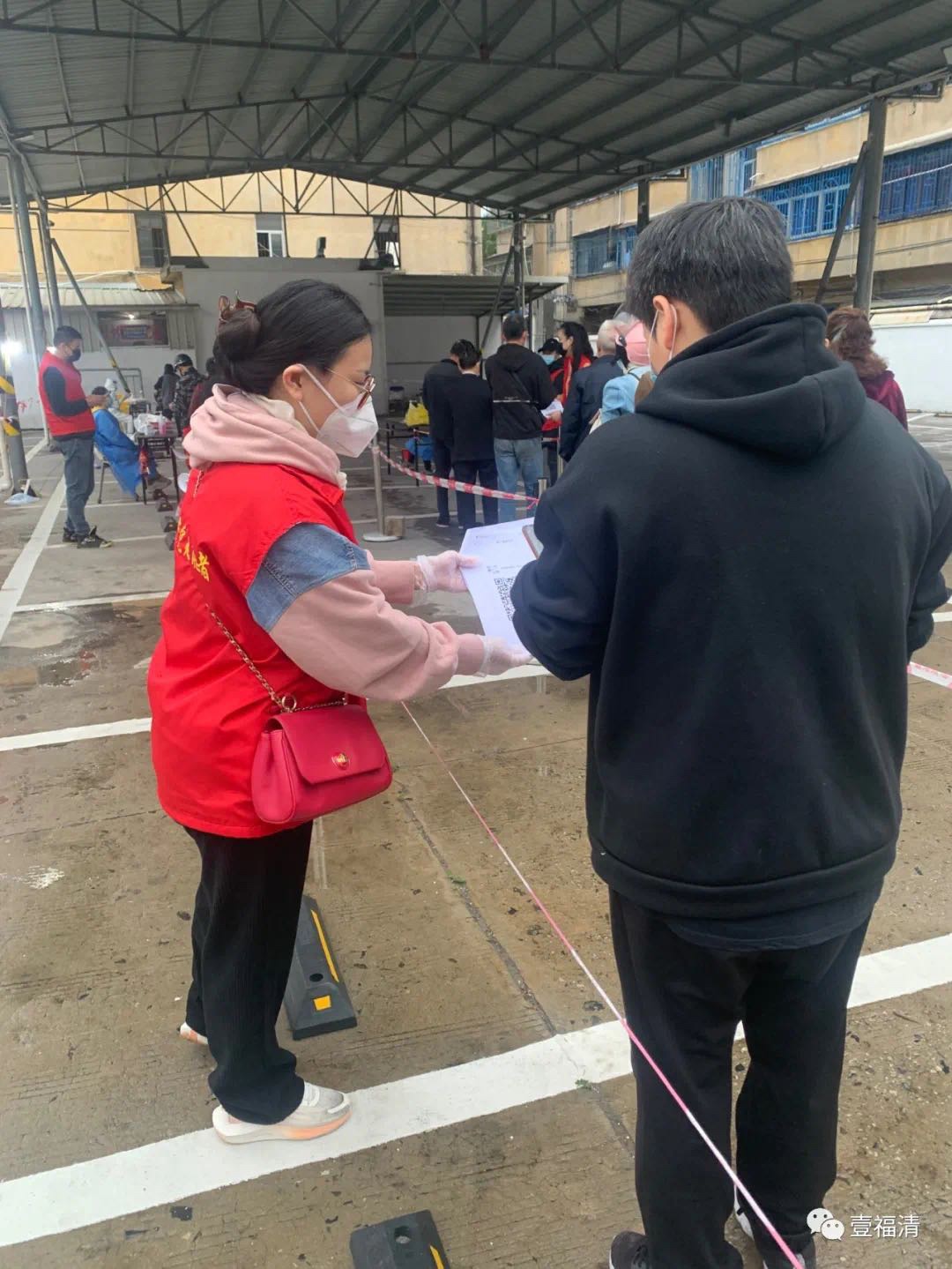 10月26日,福清市开展区域核酸检测,市交通局安全监督科的陈灵第一时间报名成为核酸采样志愿者,前往渔溪镇多个核酸采样点协助开展测温、扫码、维持现场秩序等志愿服务工作。由于采样现场人员多,戴着口罩喝水不方便,志愿服务期间,陈灵几乎很少喝水,也很少上厕所,一站就是一整个上午。