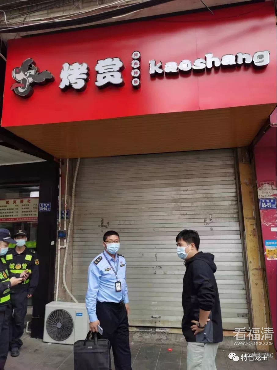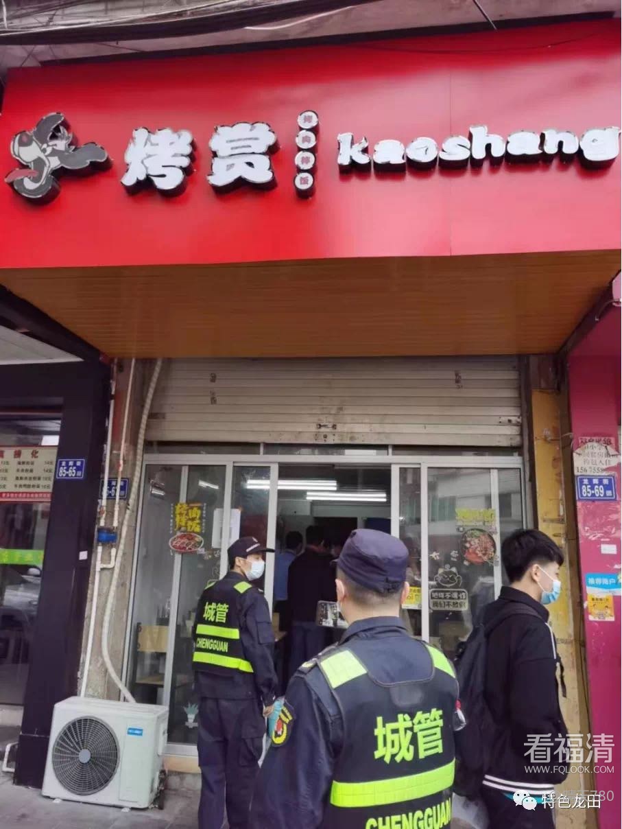 龙田镇烤赏烤肉拌饭小吃店未落实暂停餐饮堂食案