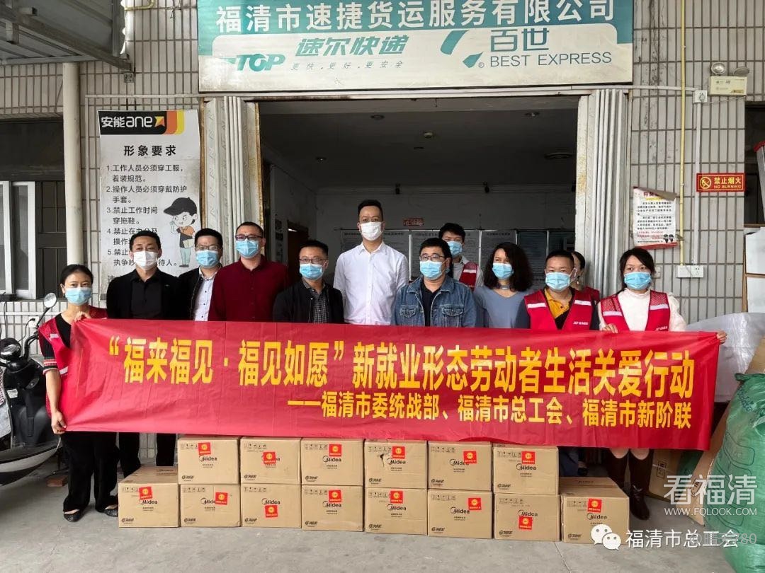 慰问组先后来到福建佳乐配送服务有限公司、福州京邦达供应链科技有限公司以及福清市速捷货运服务有限公司,与企业负责人、新就业形态劳动者亲切交谈,深入了解他们工作生活中的需求,同时送上暖心心愿礼,共送出20个烤箱、130个电饭煲。
