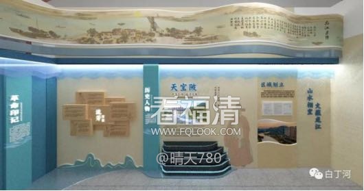 入口右边展示了有关龙江街道区域划立的历史,将微缩的天宝陂搬入展馆中,立体呈现,并滚动播放天宝陂的的前世今生与申遗时的影像资料。