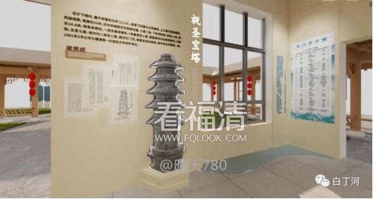 微缩戏台造景,可亲身感受词明线戏的魅力。此处重点展示古建大师梁思成曾译文发表过的福清祝圣宝塔文章,将3D打印的祝圣宝塔置入展馆,穿越古今,近距离感受历史的沉淀。
